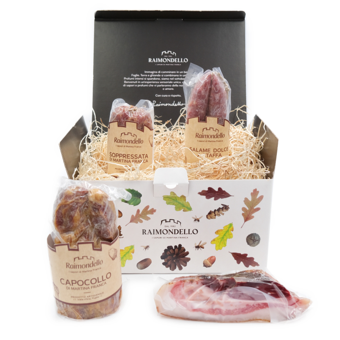 La Box “I Profumi della Valle D’Itria – Essentials” ti offre l’essenza della tradizione norcina di Martina Franca, con prodotti di qualità e genuinità. Ideale per regalarti o regalare una degustazione di prodotti unici e artigianali, questa selezione di salumi rappresenta il meglio della cucina pugliese.